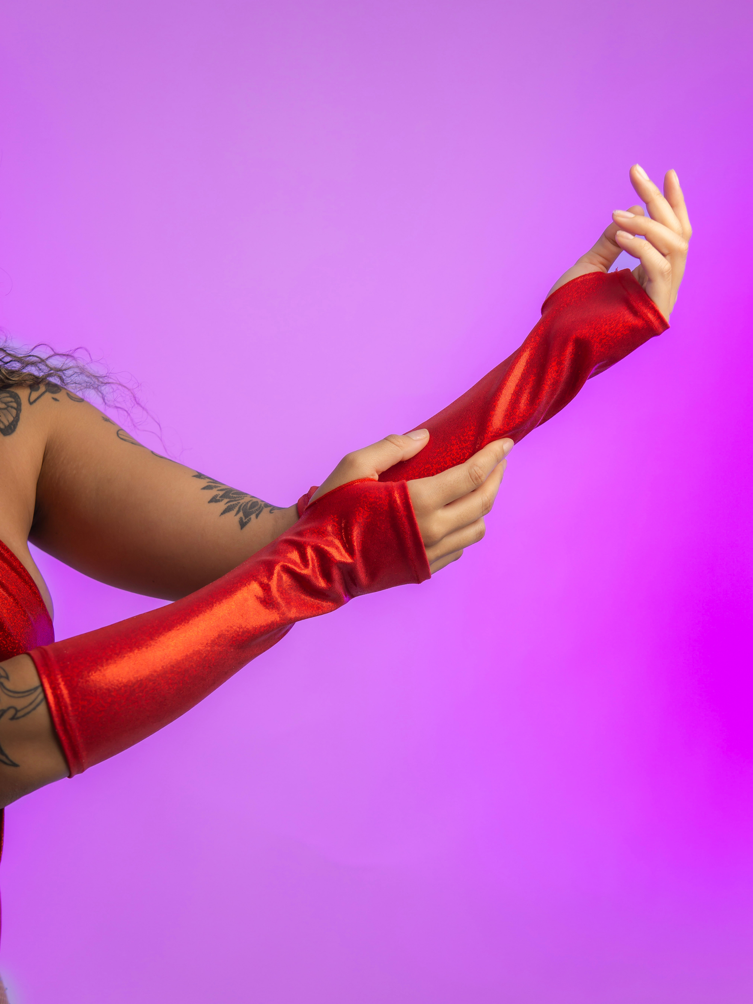 Hotter than the headliner. These Red Holo Gloves are made from a bold, light-catching holographic fabric that shimmers with every move. Sleek, stretchy, and impossible to ignore, they’re the perfect finishing touch to turn any rave outfit into a full main-character moment.