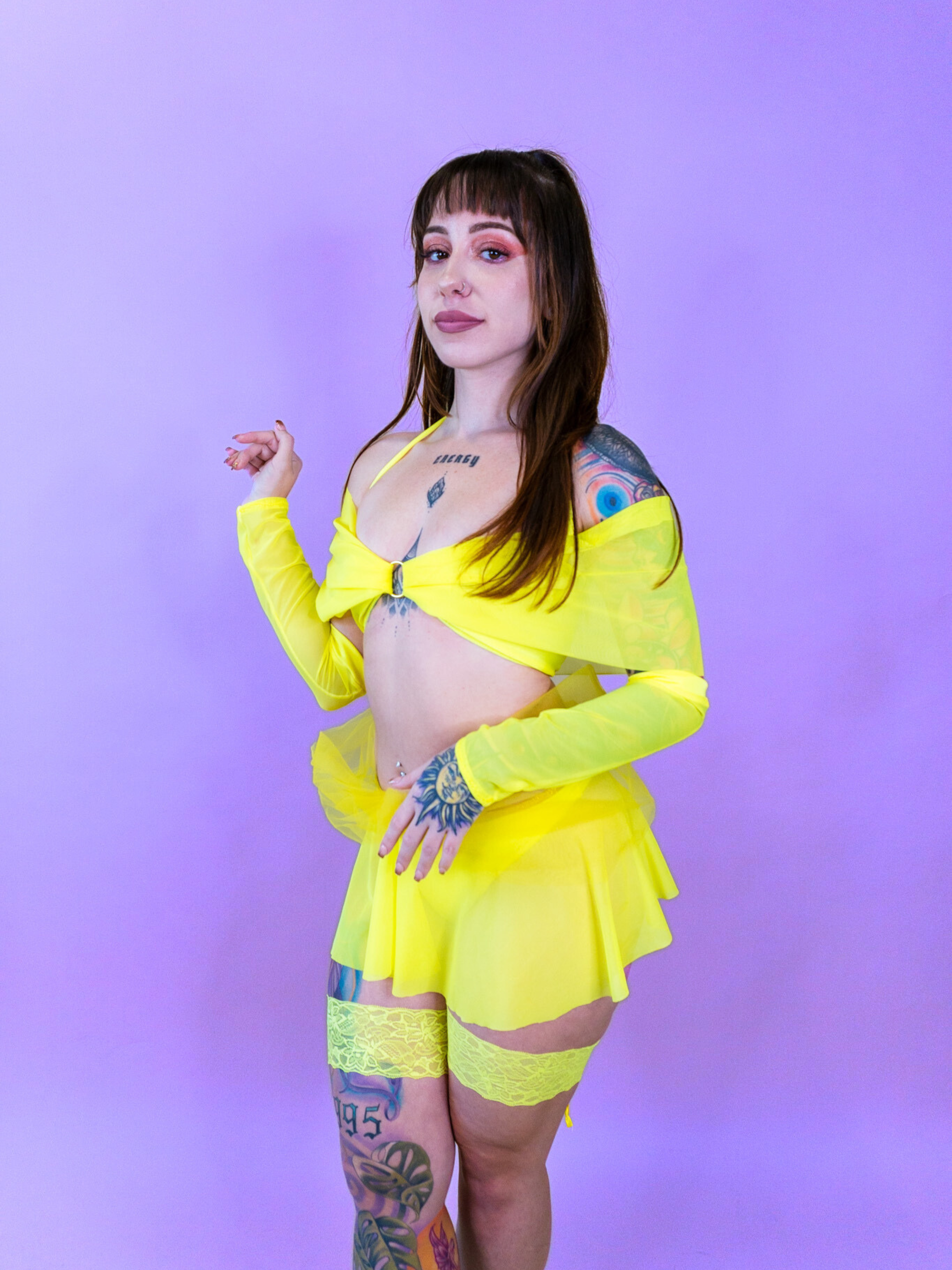 Our outfits generally run true to size, but we recommend checking our size chart for the best fit. If you're between sizes or prefer a more snug/loose fit, consider sizing up or down accordingly. Click here to view our model size guide!