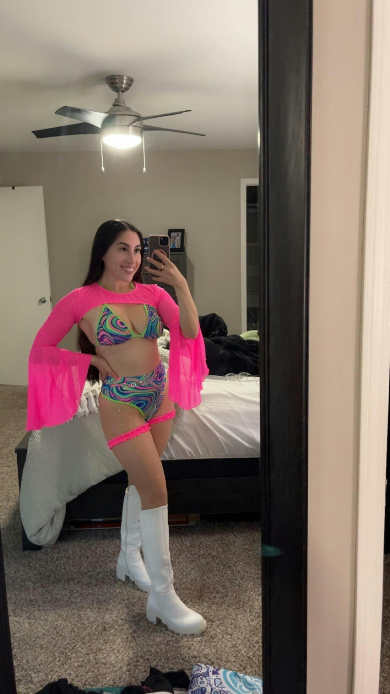 Our outfits generally run true to size, but we recommend checking our size chart for the best fit. If you're between sizes or prefer a more snug/loose fit, consider sizing up or down accordingly. Click here to view our model size guide!